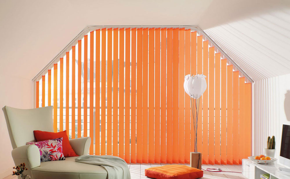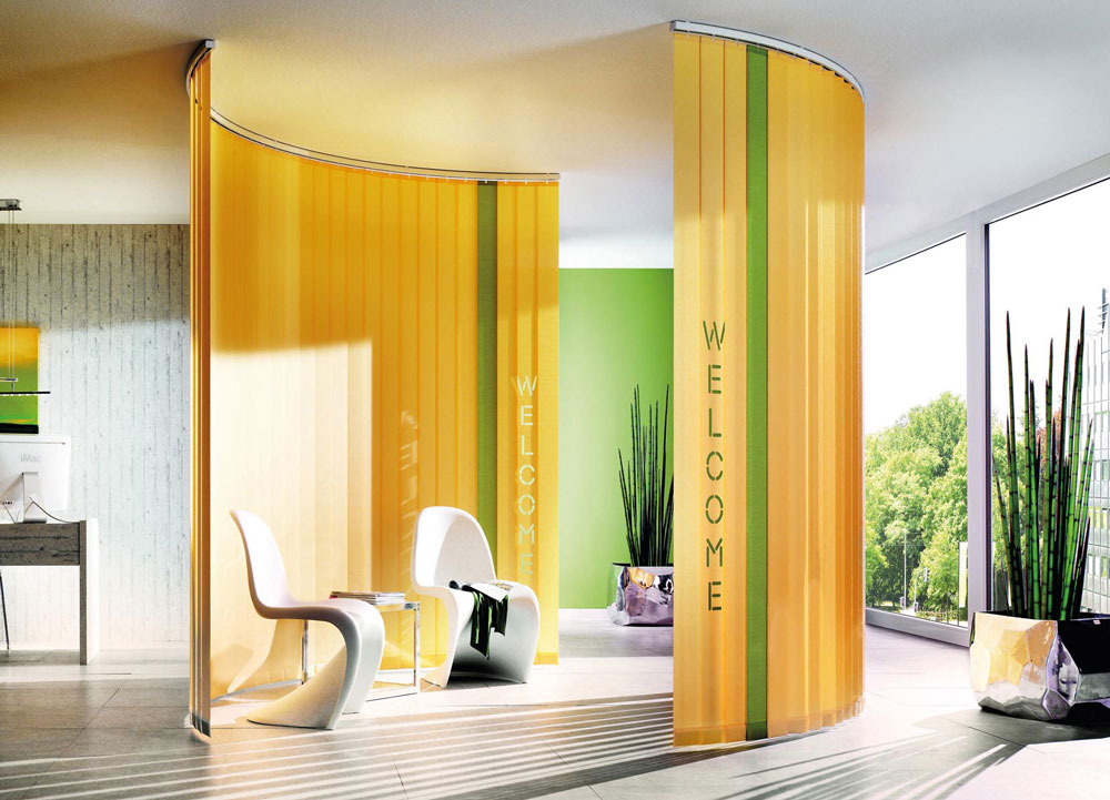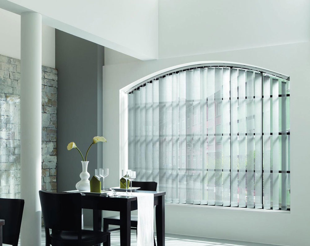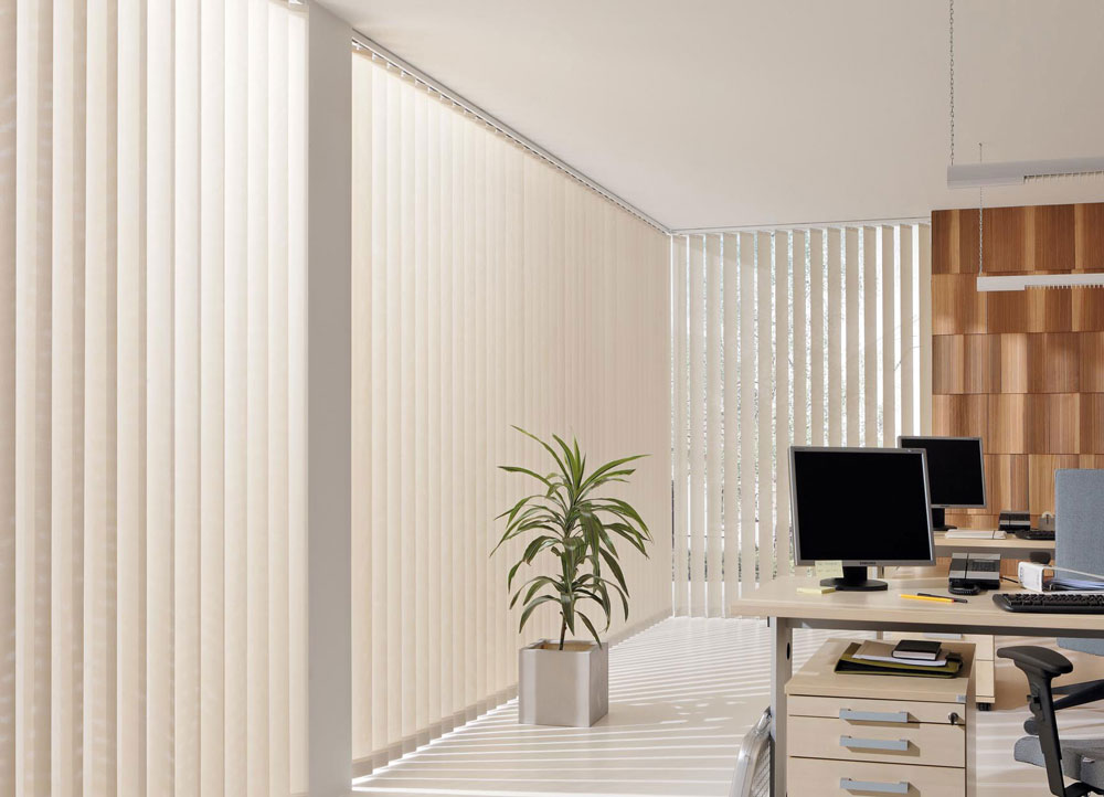 Vielfach bewährt ermöglichen Vertikallamellen die schnelle Beschattung großer Fensterflächen. Die Handhabung erfolgt durch robuste Bedienelemente.