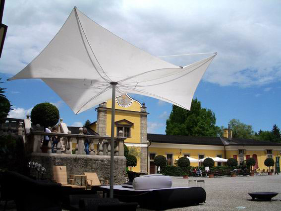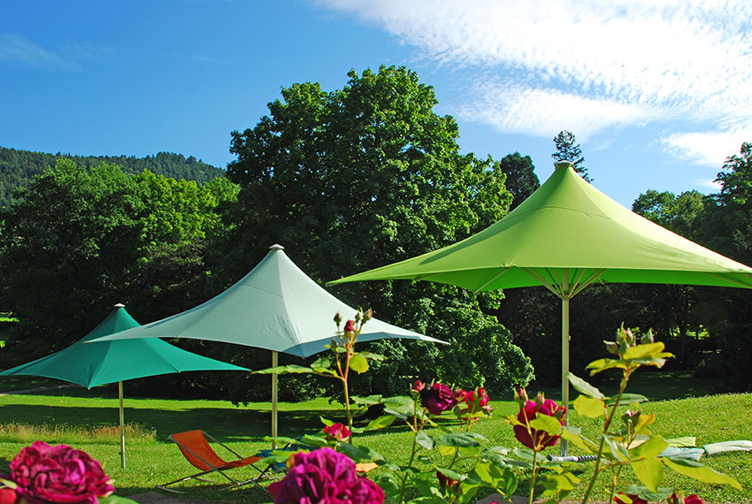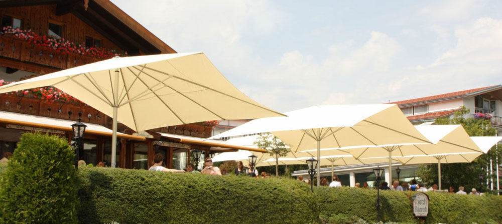 Freistehende Schirme werden dort eingesetzt, wo die Beschattung unabhängig von einem Gebäude gewünscht ist. Robuste Schirme erlauben mit hochwertigen Materialien den Einsatz in jeder Jahreszeit.